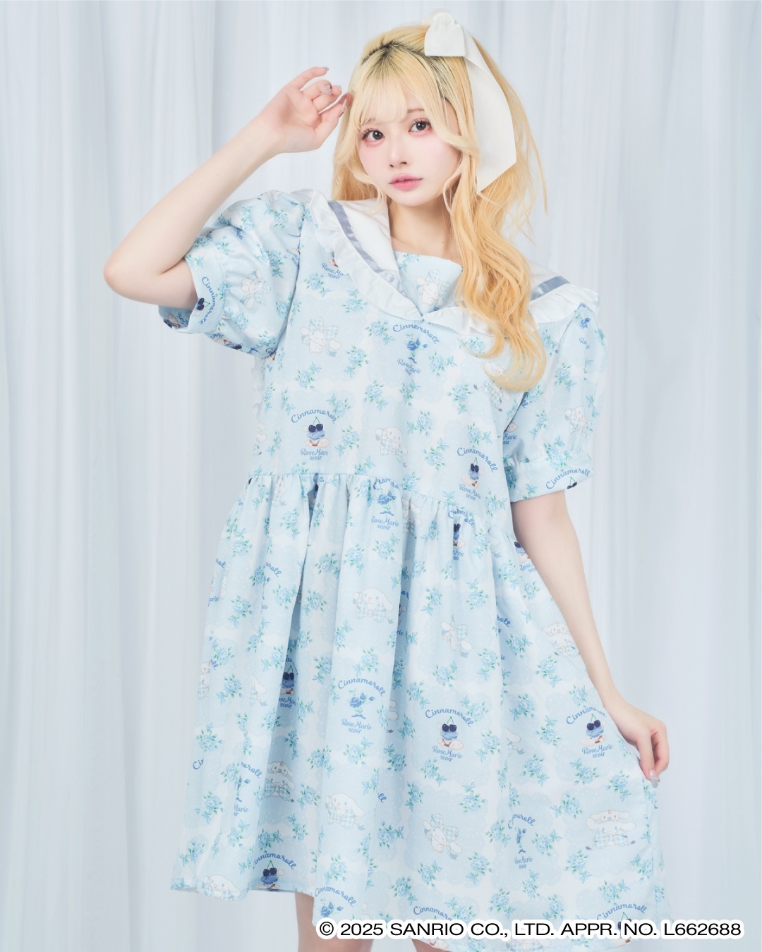 爽やかなデザインのセーラーワンピースはシナモロール&みるくとマロンクリームの2柄でご用意いたしました。