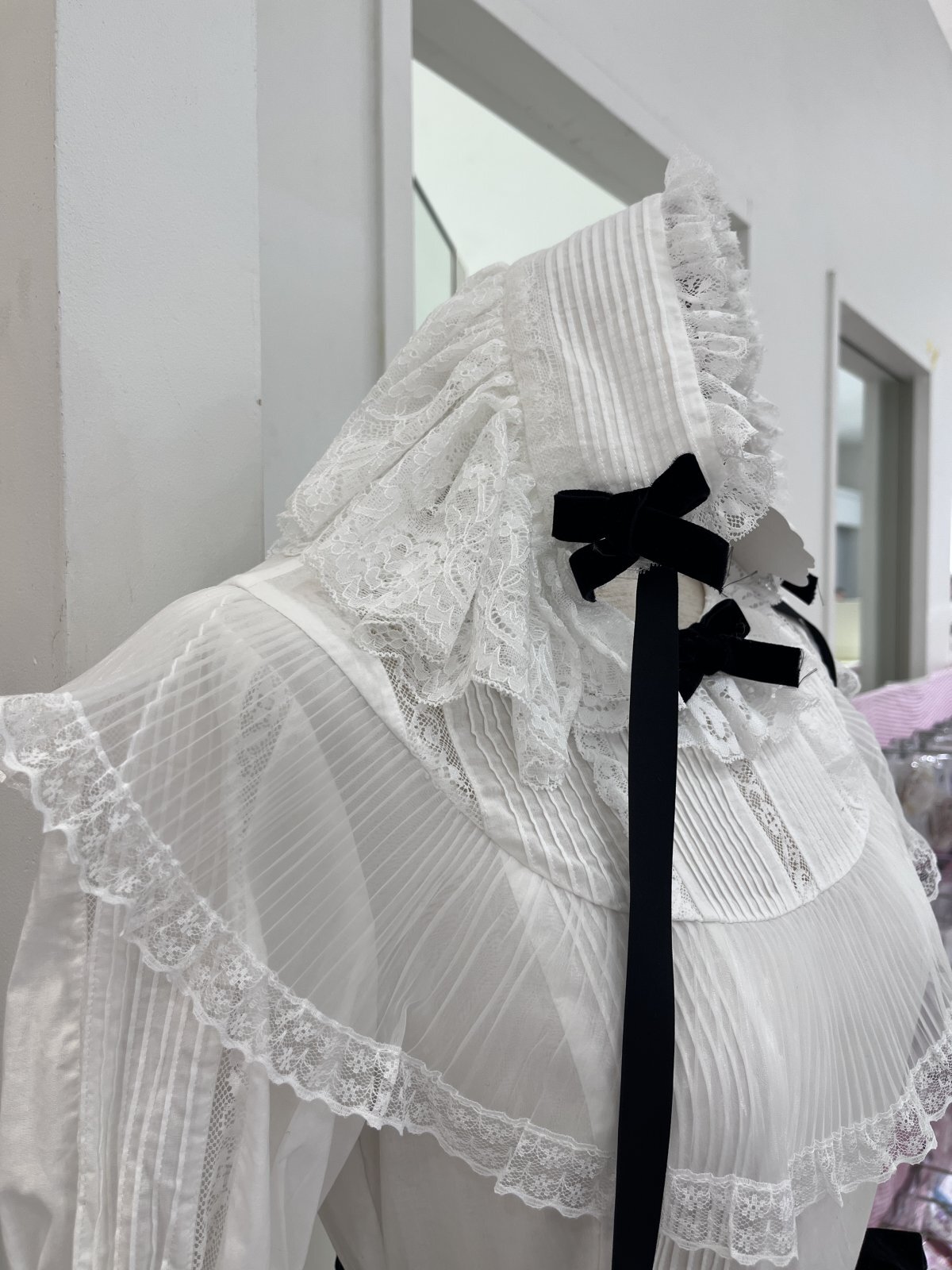 レースやタックがたっぷりとあしらわれたヴィンテージドレスのような雰囲気のヘッドドレスです。