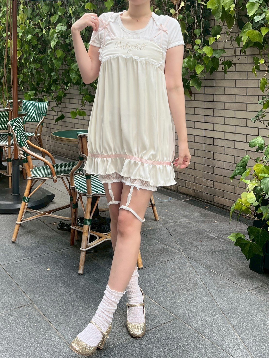 babaydoll刺繍のキャミソール。